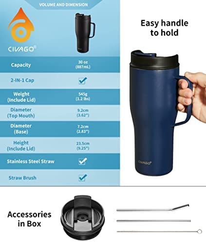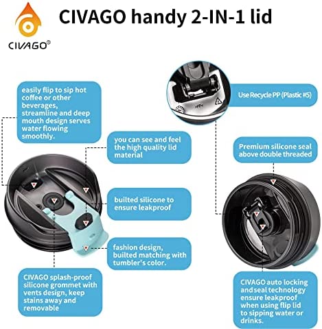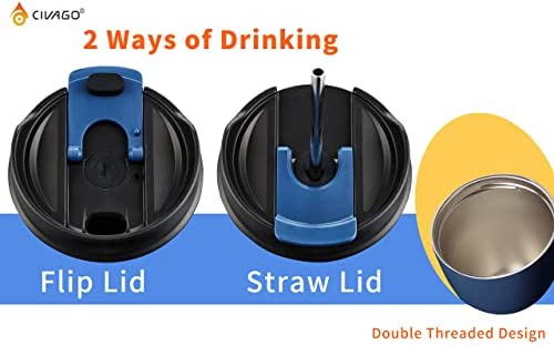 UPGRADED 2-IN-1 TUMBLER WITH HANDLE: CIVAGO new travel mug has perfectly leakproof and splash-proof sip&straw 2IN1 lid, less pay, more value (straw lid and flip-top lid). unlike other tumblers with pop-in lid, CIVAGO locking system adopt double threaded twist design, increases thermal performance, avoiding popped off when you are enjoying drinking.